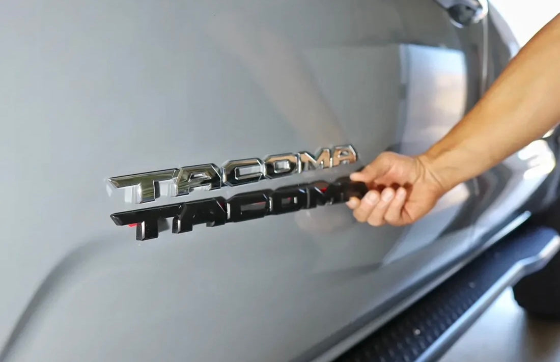 Black out the chrome emblems that come standard on your Tacoma with our Black Emblem Overlays. Install is easy, simply place the black emblems over the existing chrome emblems, and they stick on with the adhesive. Emblems are all black and have a satin finish to them.
